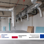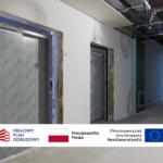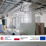 • Prace wykończeniowe wewnątrz – trwają roboty na parterze, I i II piętrze: wykonywanie gładzi, zabudowy płytami gipsowo-kartonowymi oraz montaż sufitów podwieszanych.