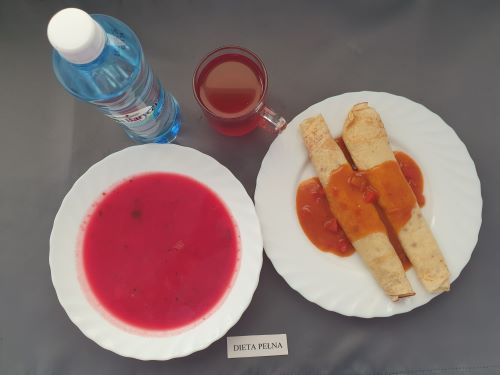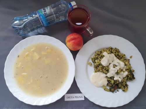 Dieta pełnaBarszcz czerwony z ziemniakami, 350 ml(GLU PSZ SEL, MLE) makaron z serem 250 (MLE JAJ GLU PSZ) kompot z owoców mieszanych 250 ml |