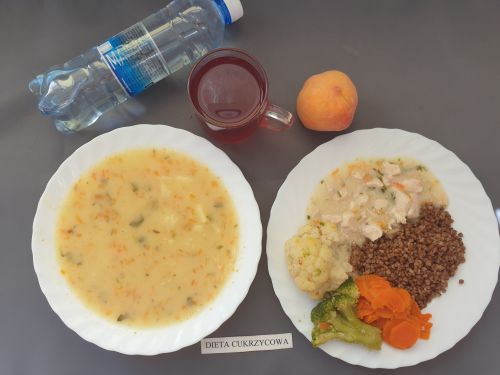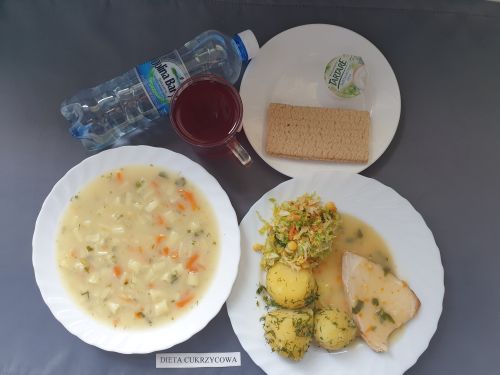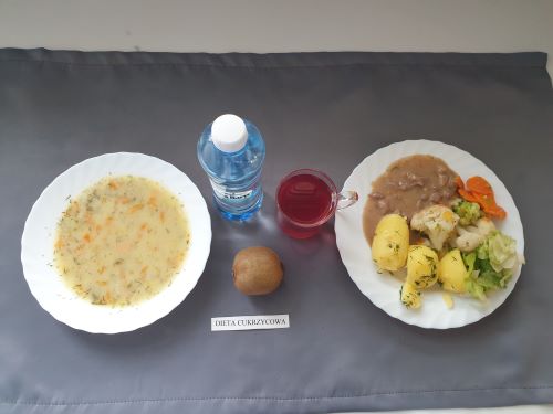 Dieta z ograniczeniem łatwo przyswajalnych węglowodanówJarzynowa z ziemniakami 350 ml(GLU, PSZ, SEL, MLE) II podwieczorek: Kefir 200 g (MLE) |